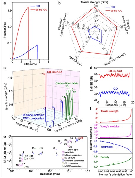 图3. rGO和SB-BS-rGO薄膜的力学和电学性能比较。