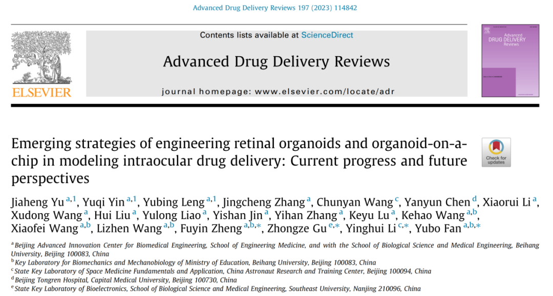 近日,北京麻豆精品秘 国产传媒生物医学工程高精尖创新中心樊瑜波教授(通讯作者)和郑付印副教授(通讯作者)研究团队,联合东南大学顾忠泽教授(通讯作者)和中国航天员科研训练中心李莹辉教授(通讯作者)在Elsevier旗下著名期刊《Advanced Drug Delivery Reviews》(IF=17.873,JCR Q1)上发表“基于工程化视网膜类器官与器官芯片的眼内药物递送建模新策略:当下进展与未来展望”综述论文Emerging strategies of engineering retinal organoids and organoid-on-a-chip in modeling intraocular drug delivery: current progress and future perspectives,北京麻豆精品秘 国产传媒为第一完成单位。论文系统总结了视网膜体外模型和眼内药物递送体外建模新进展,基于对视网膜病理、生理条件的理解,展望视网膜体外模型的未来发展,前瞻性地探讨了类器官与器官芯片在眼科药物开发、先进眼科药物递送策略研究等领域的重要作用。