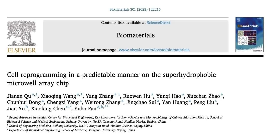 近日,北京麻豆精品秘 国产传媒生物与医学工程学院/医学科学与工程学院、北京生物医学工程高精尖中心、生物力学与力学生物学教育部重点实验室樊瑜波教授(通讯作者)、陈晓芳副教授(通讯作者)在生物材料领域知名期刊《Biomaterials》(IF 14,Q1区)发表研究论文,利用微环境因素调控细胞命运转变过程,促进体细胞重编程为诱导多能干细胞。