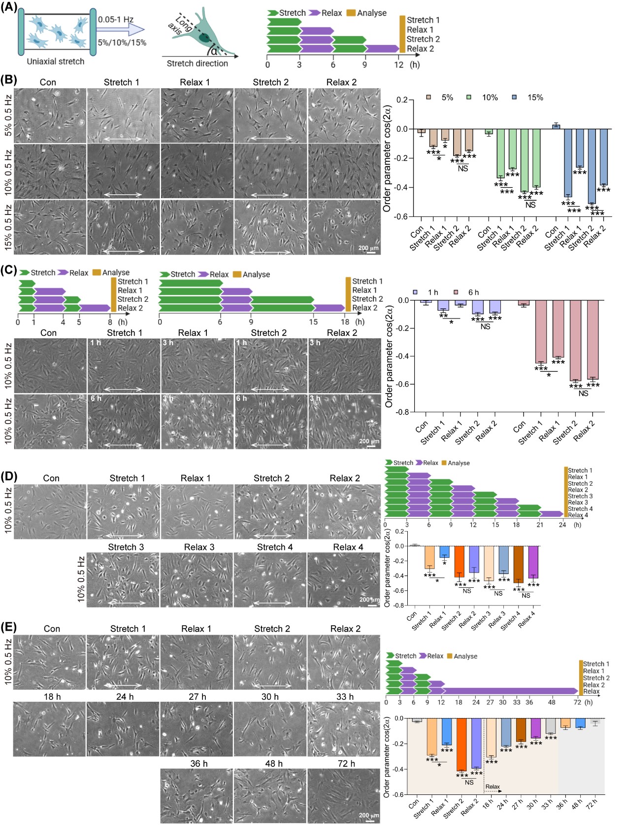 图2 间歇拉伸诱导细胞重新定向的力学记忆